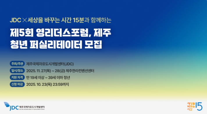 「제5회 영리더스포럼, 제주」 청년 퍼실리테이터 모집 공고
